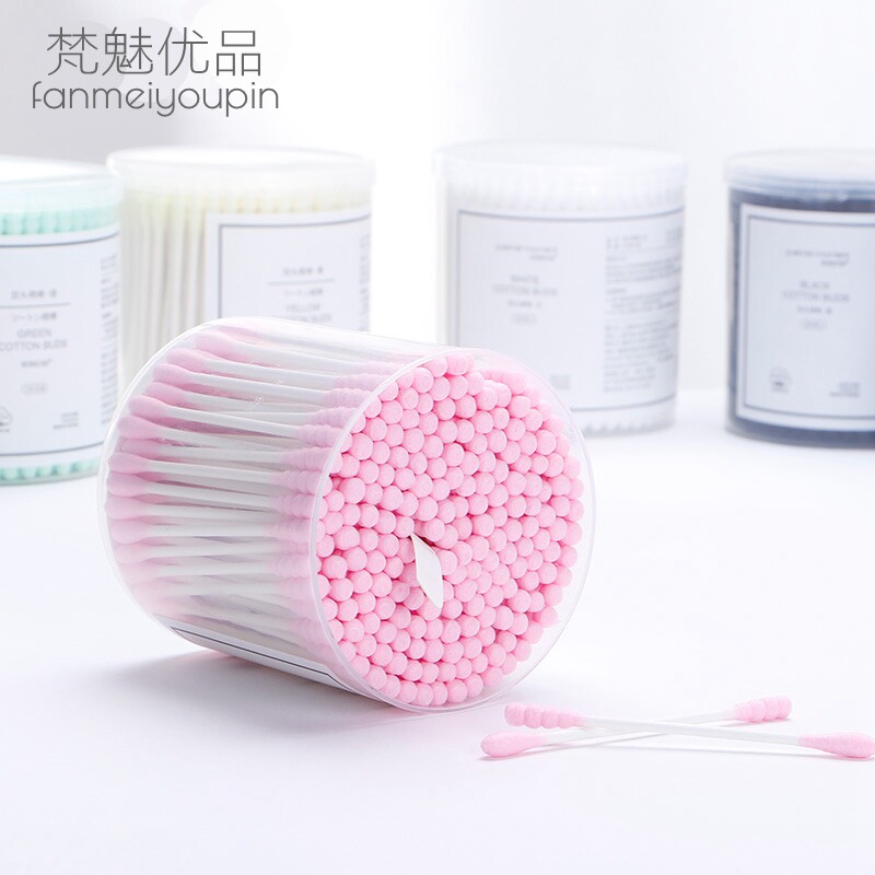 Double Head Cotton Stick 200 Packs Colored Pure Cotton Makeup Round Pointed Shackles Makeup cotton stick Ears Cotton Stick