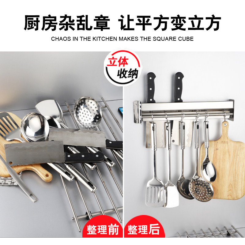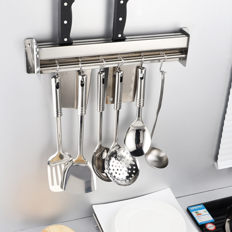 304 stainless steel knife rack kitchen wall-mounted rack kitchen knife rack free punching shovel spoon hook knife storage shelf