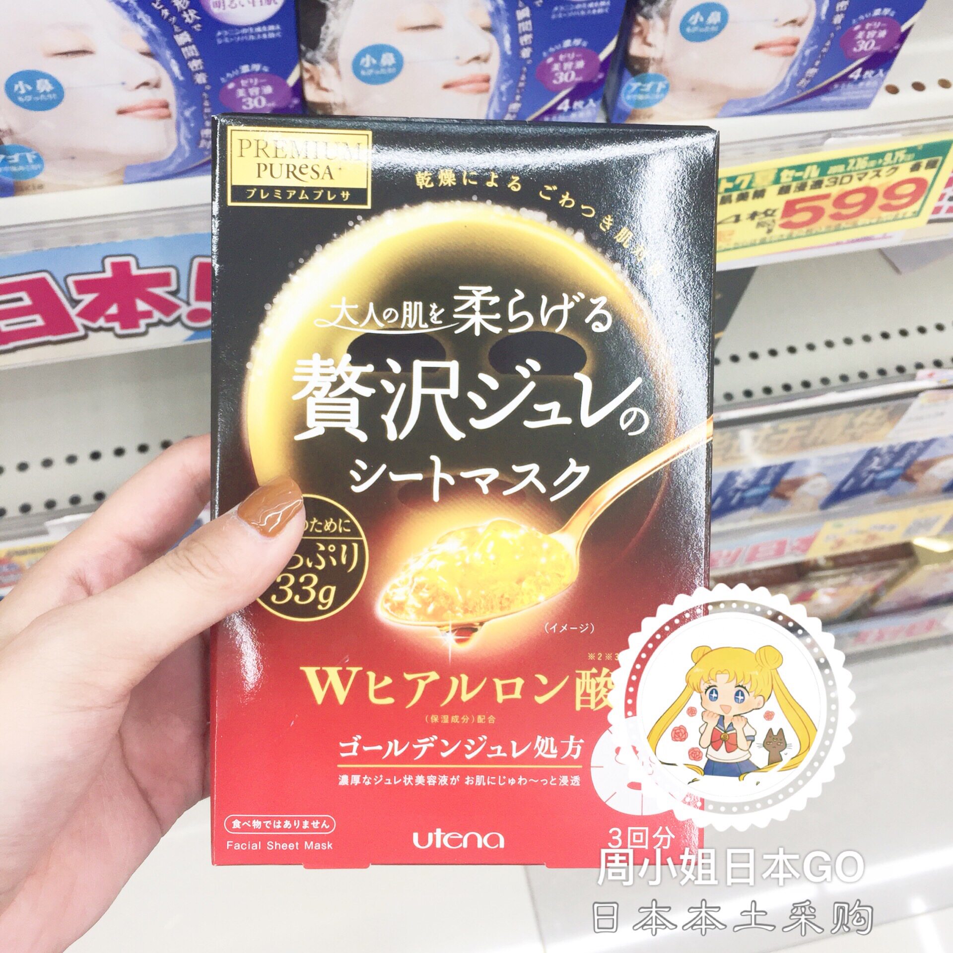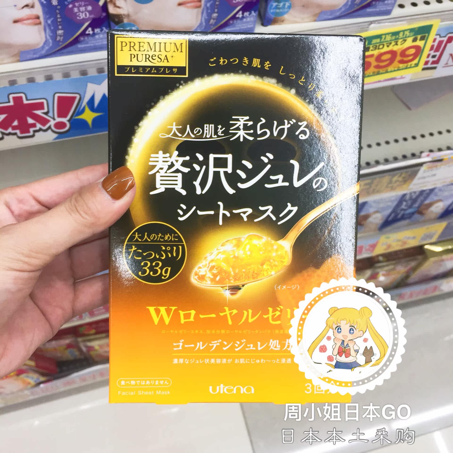 Spot~Japan UTENA Yu Tianlan Gold jelly mask with moisturizing and moisturizing elastic force compact 3 pieces