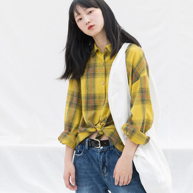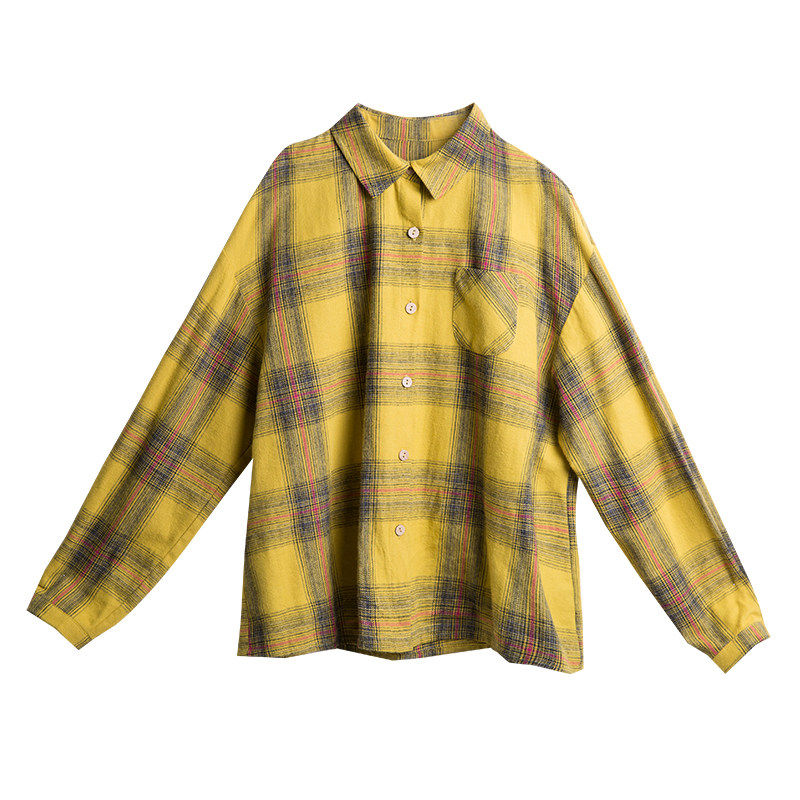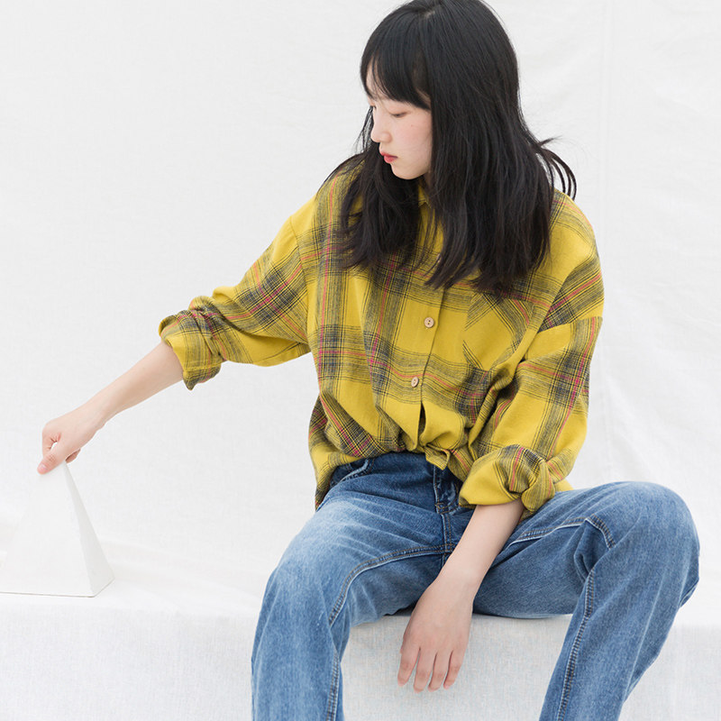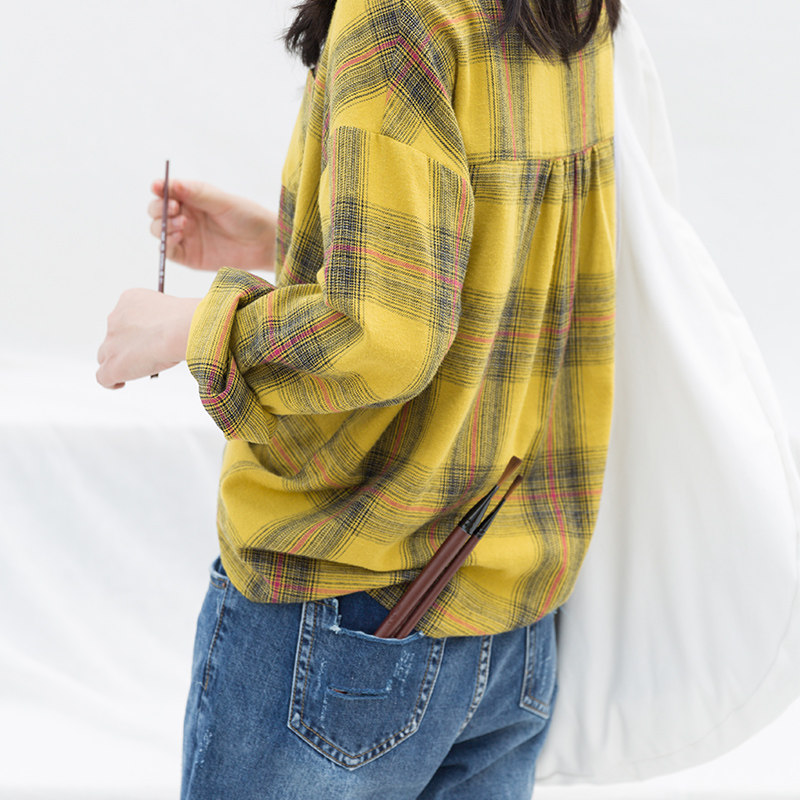 suin2022 autumn new small man literary casual loose fit plaid long-sleeved shirt lady's shirt 8369