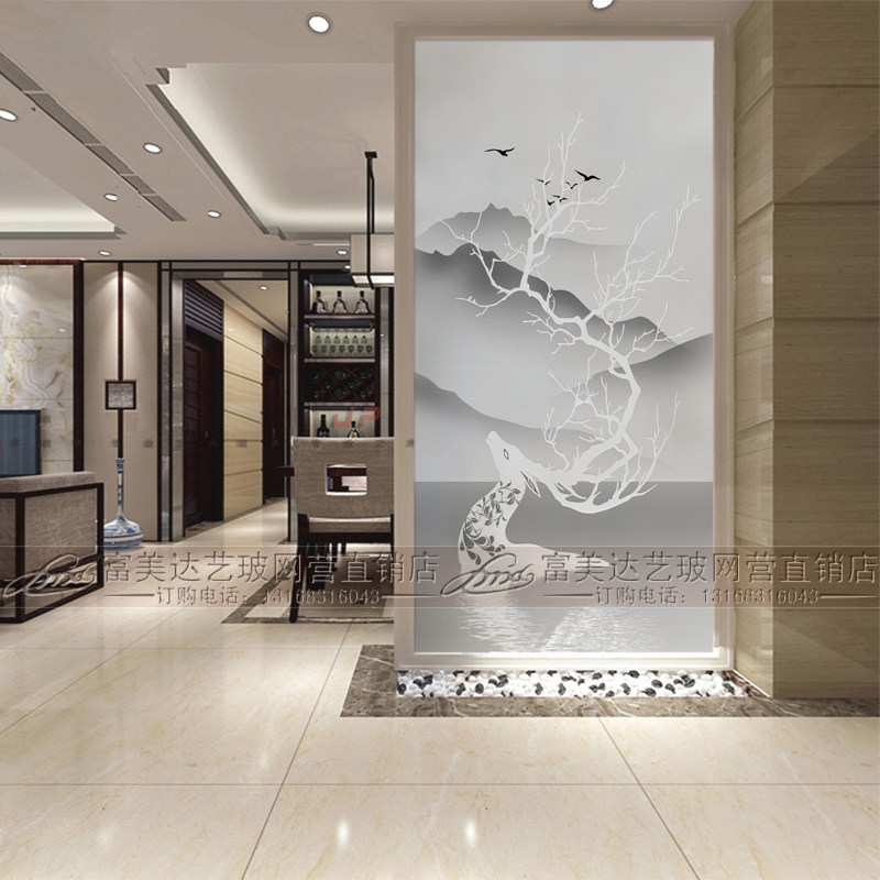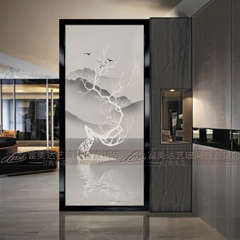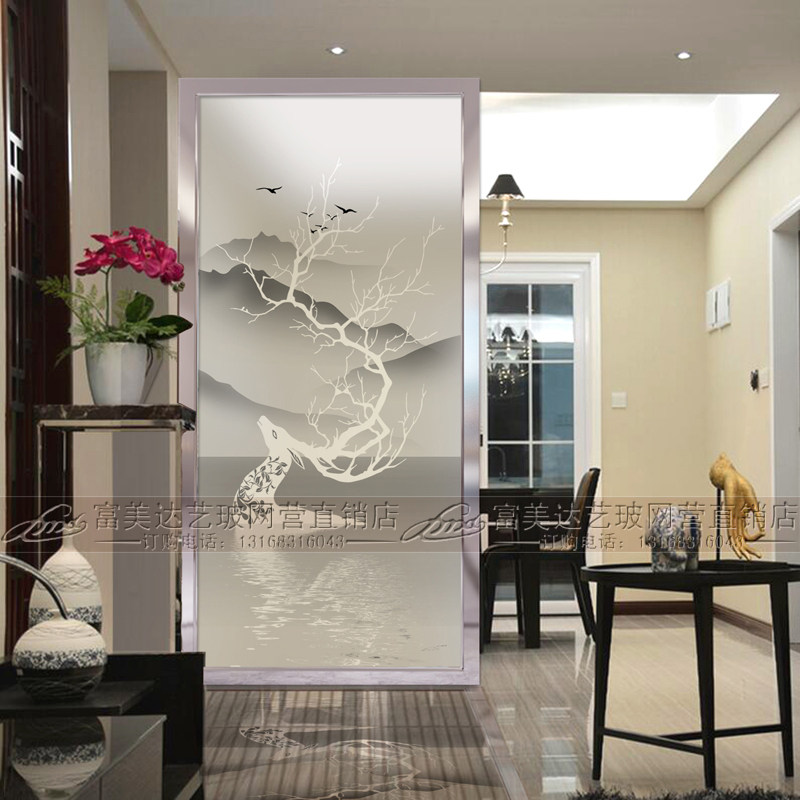 Modern simple living room decorative art glass partition frosted transparent screen porch light luxury custom waterproof process