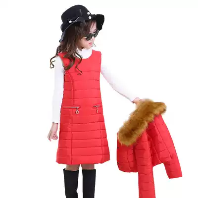 Girls Set Thickened Winter Dress 2020 New Korean Children's Cotton Coat Two Piece Set Female Middle and Big Child Clip Cotton Back Dress