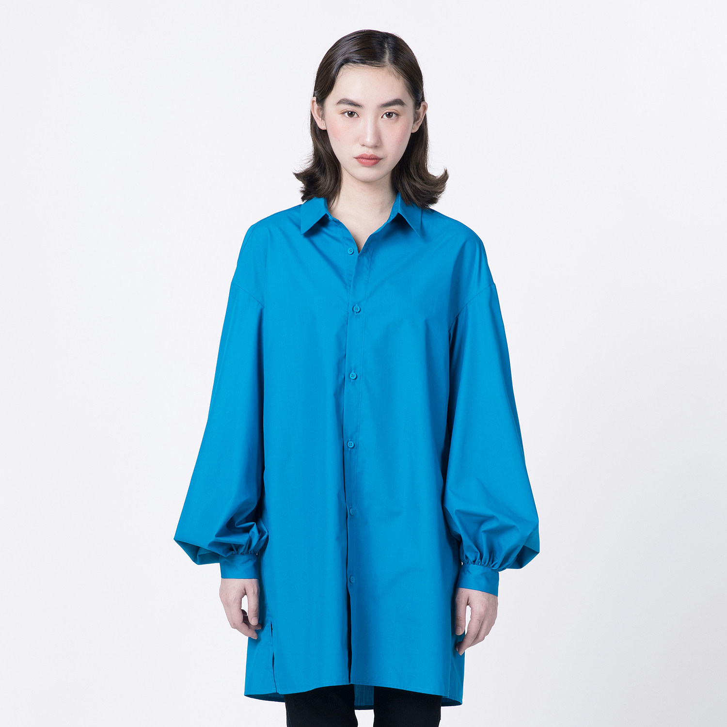 UNDORABLE Black blue white loose lantern sleeve French long shirt medium long original design women's clothing