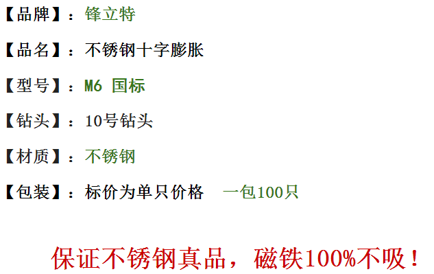 M6 * 6080100 cross positive stainless steel expansion screw groove upside down hanging countersunk head bolt burst-Taobao