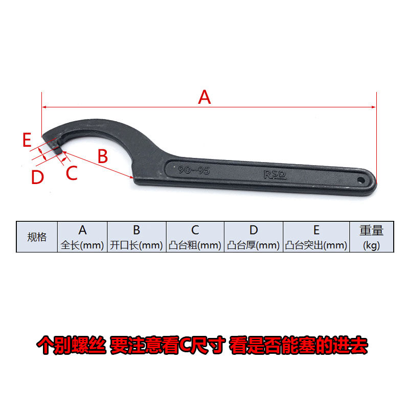 Crescent wrench 22-320 outer diameter screw round nut wrench side face hook wrench hook type water meter cover wrench