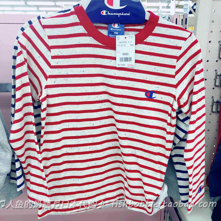 Spot Clearance Japanese Champion Champion Spring and Autumn Striped Long-sleeved T-shirt Store Bought Tops