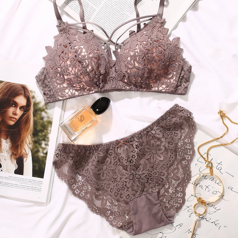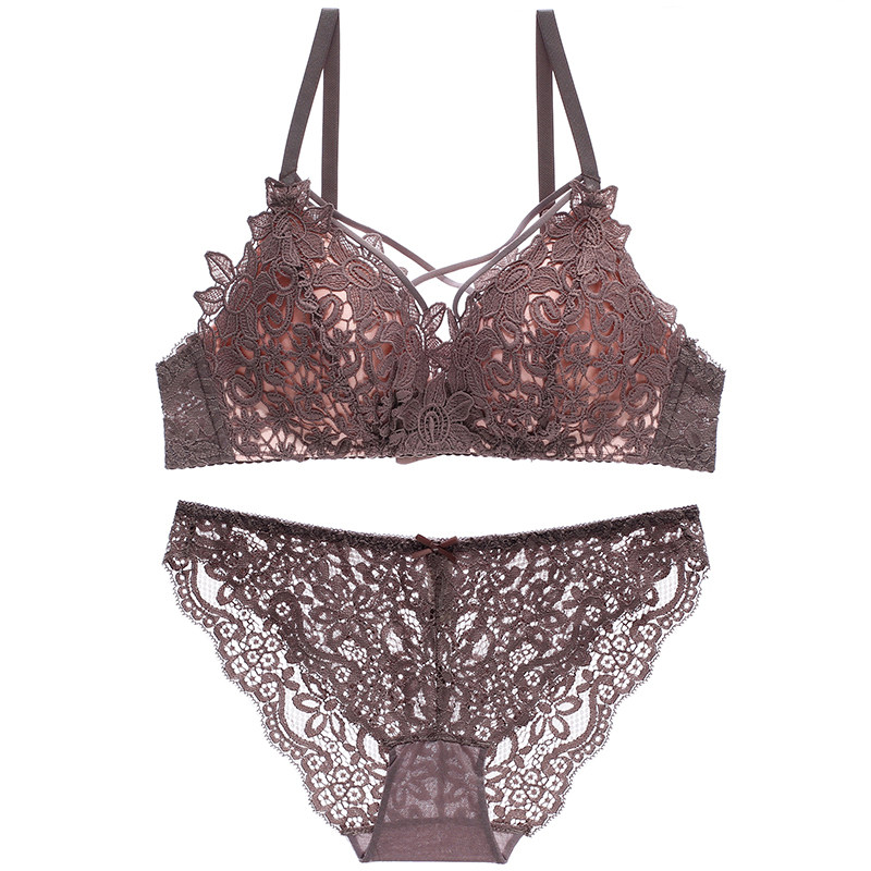 No steel ring sexy lace underwear suit women gather thin cup bra on consignment small bra with breast adjustment