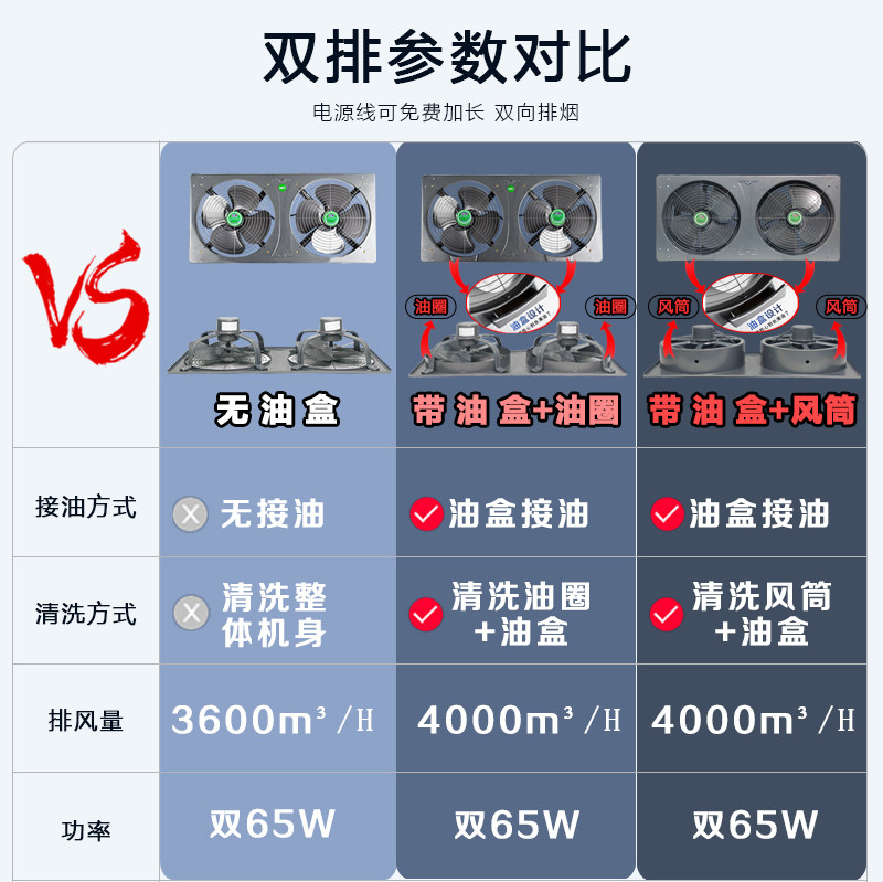Double row exhaust fan ventilation strong silent exhaust fan kitchen exhaust fan oil fume household window smoke one-piece double