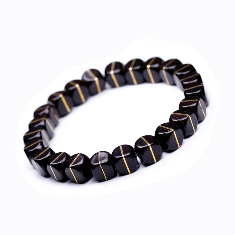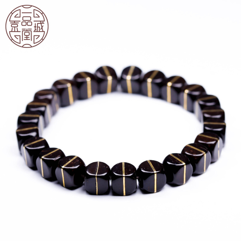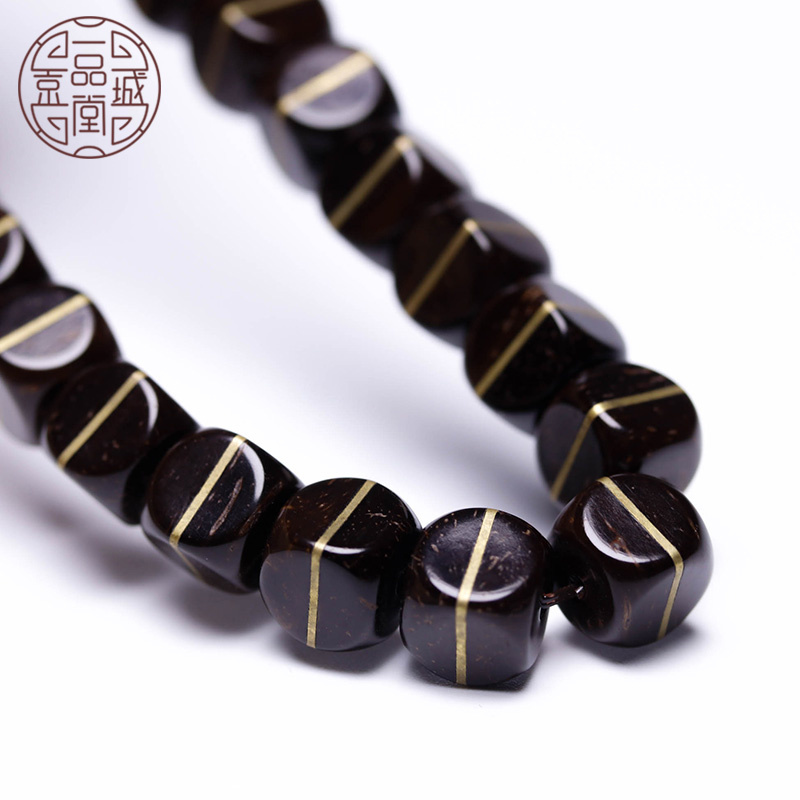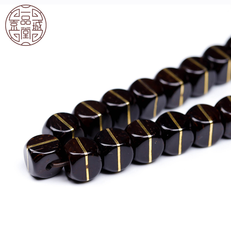 Indonesian old material coconut base inlaid copper first-line pharmacist six-sided dice single-circle bracelet natural primary color boutique Buddha bead bracelet