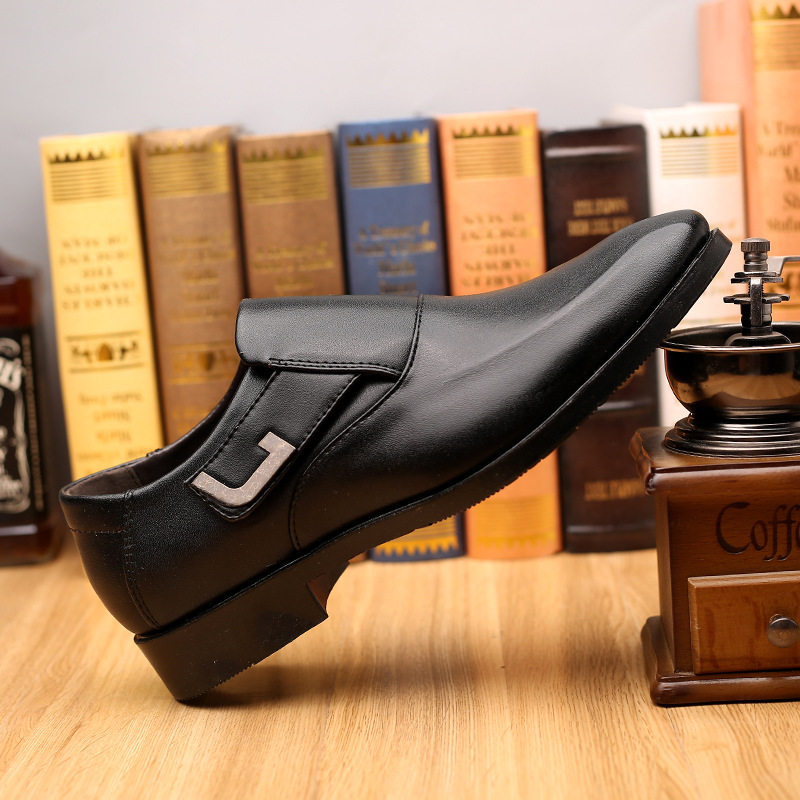 Men's Leather Shoes Black Men's Casual Shoes Fashion Personality Boys Hairstyle Spring and Autumn Leather Shoes Korean Version Trend British Pointed Toe