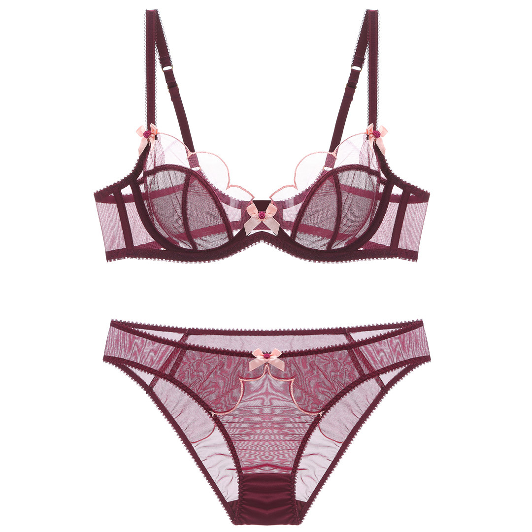 Woman's Secret Sexy Ultra-thin Perspective Lace Small Cute Suit Retro Lingerie Bra style European and American Black Red