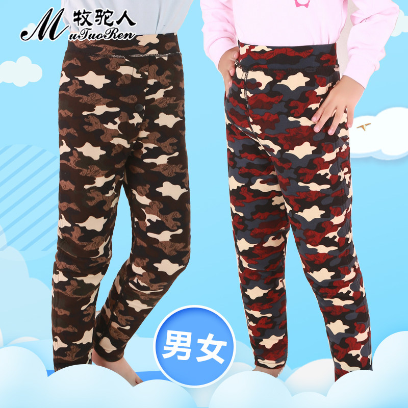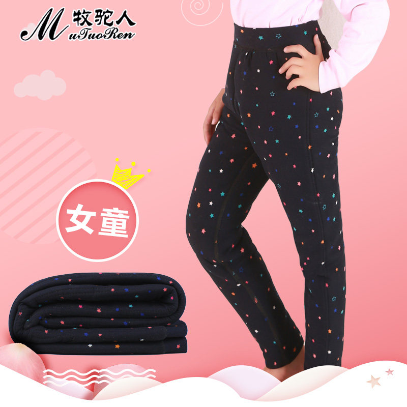 Children's clothing autumn and winter children camel warm pants thickened with velvety winter cotton pants girl wool pants baby pants internal lap pants