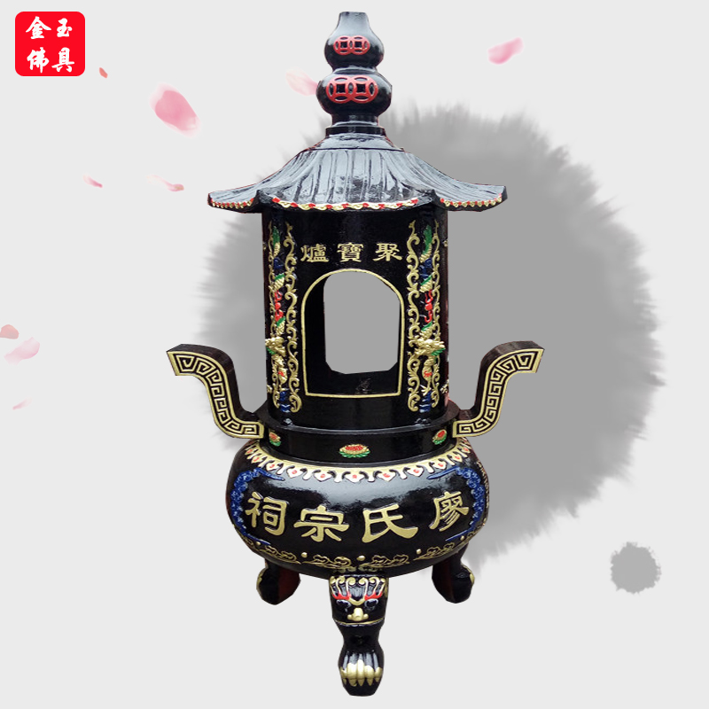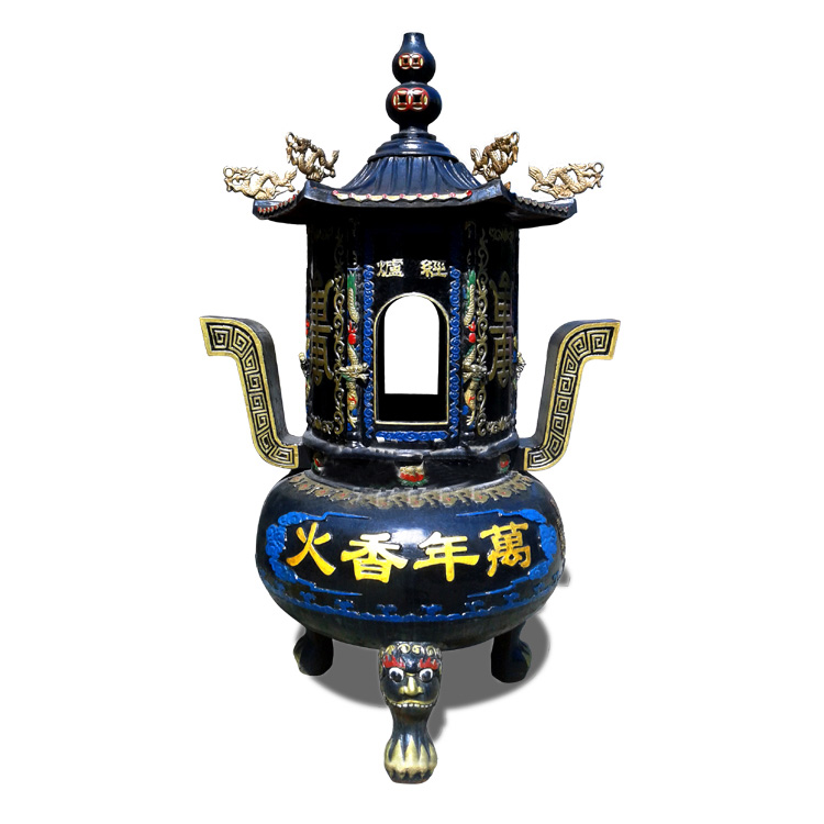 Temple Ancestral hall Cast iron large round belly burning sutra furnace Buddha Hall Treasure furnace Taoist paper burning outdoor money incense burner