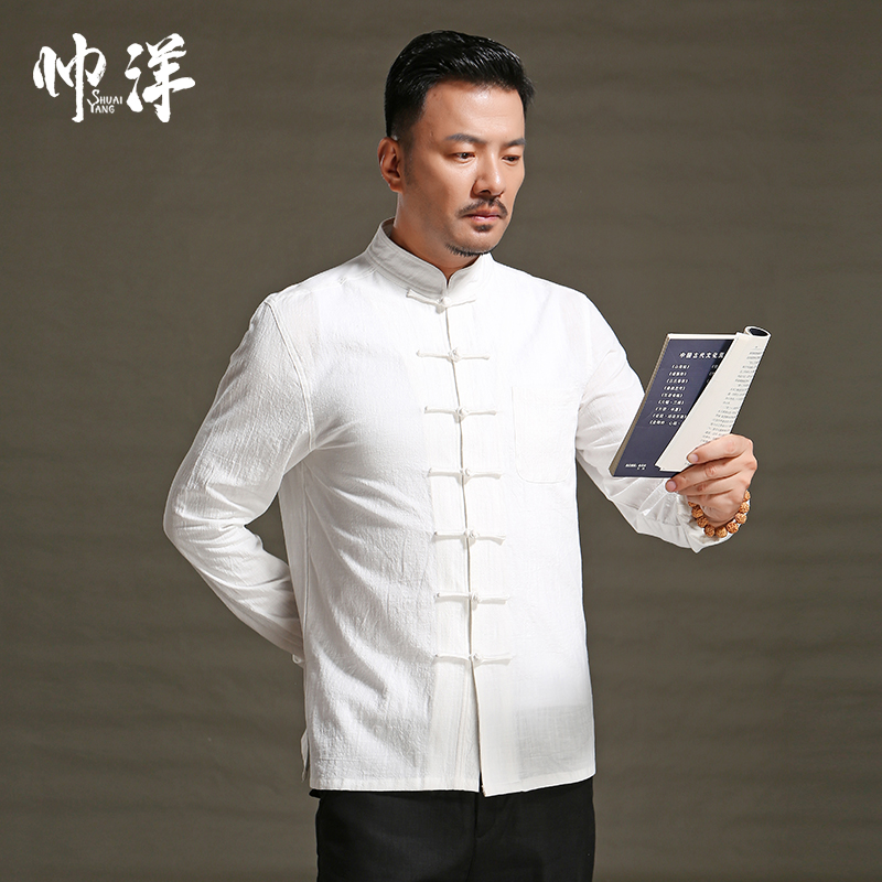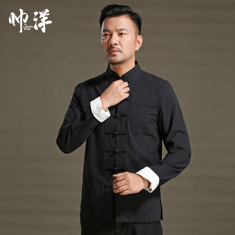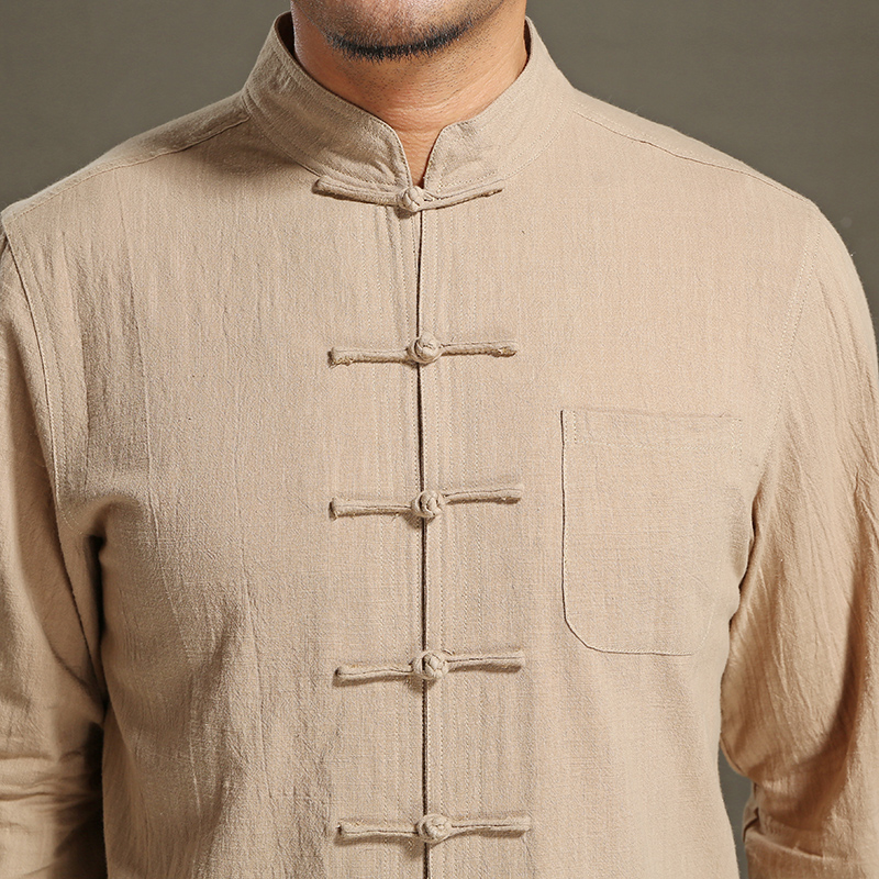 Chinese style men's retro shirt Spring and Autumn Tang suit men's Zen suit Han Suit Cotton seven-plate buckle tea suit Chinese ancient style