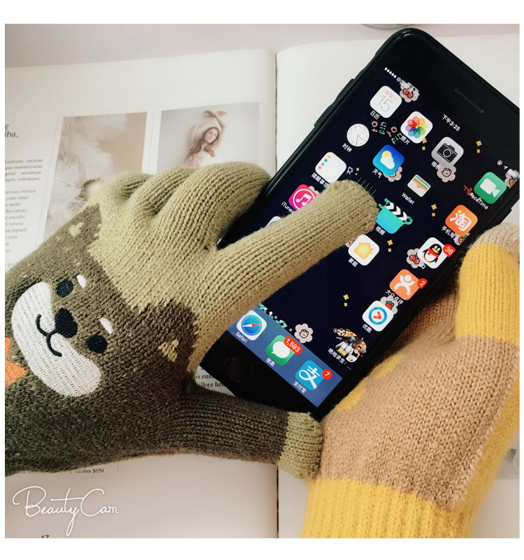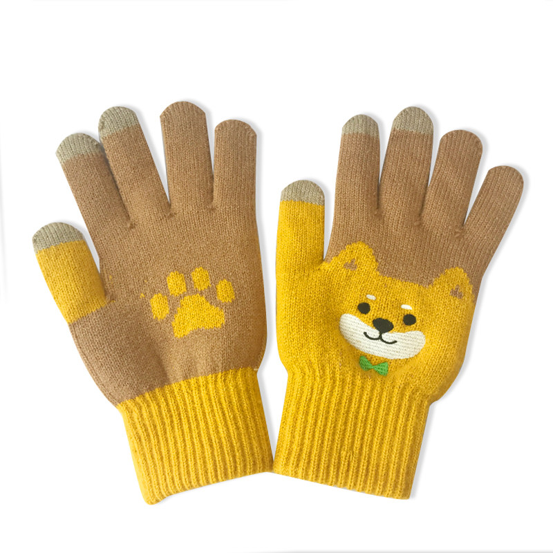 2 pairs of Japanese Akita dog cartoon touch screen gloves thicken hair - hair gloves for men and women couples
