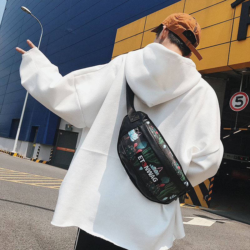 China Wind Flowers Pattern Chest Bag Men And Women's Bag Fashion Chest Bag Trend Casual Small Purse Tide Men's Bag Lovers Bag