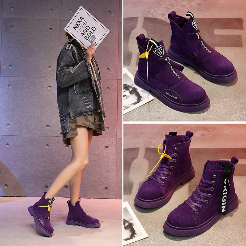 Short boots 2020 Wolf Warriors 2 spring and summer purple Martin boots female British style students Korean version of the versatile chic motorcycle boots