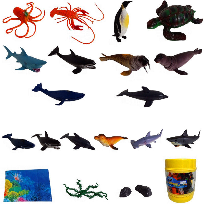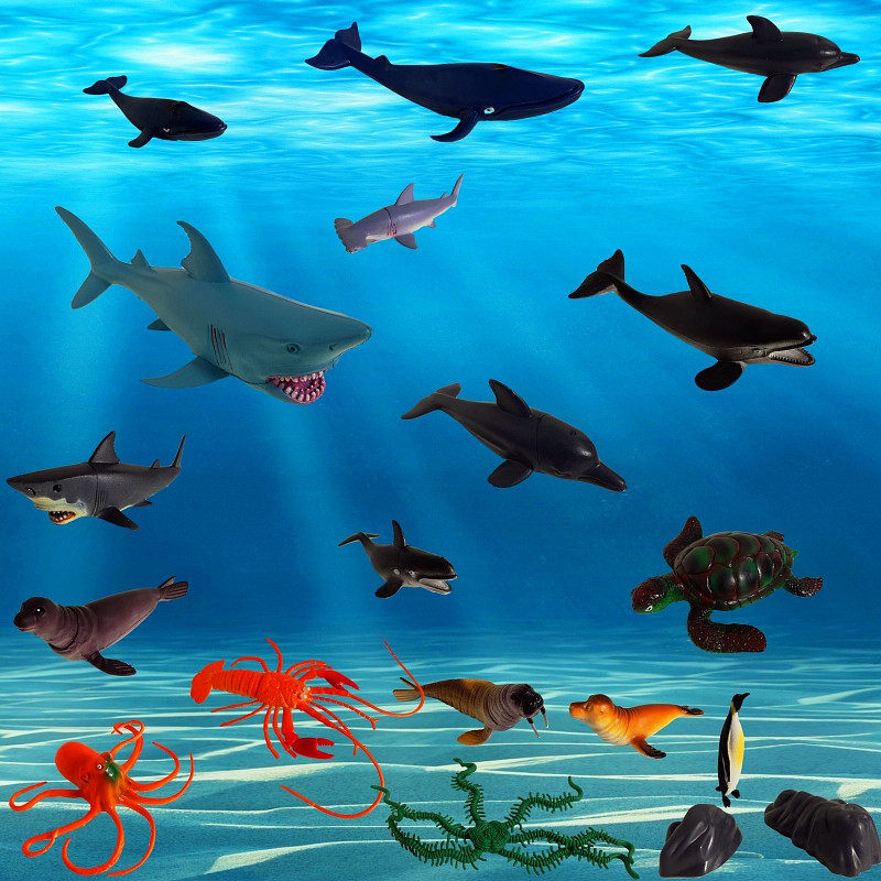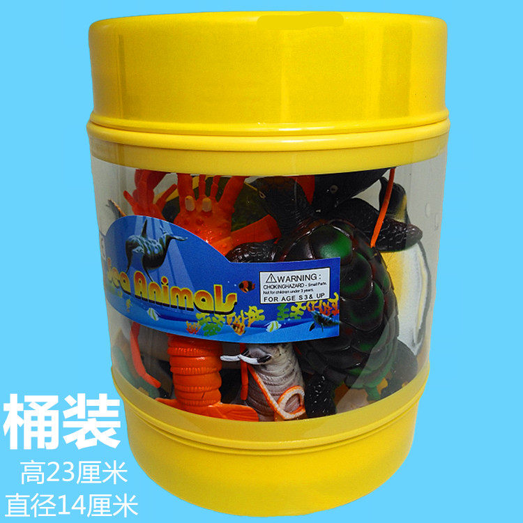 Simulation soft plastic marine life animal model toy set Shark turtle lobster barrel underwater museum with the same paragraph