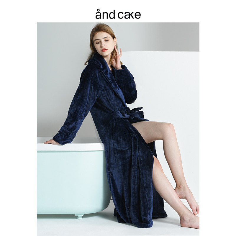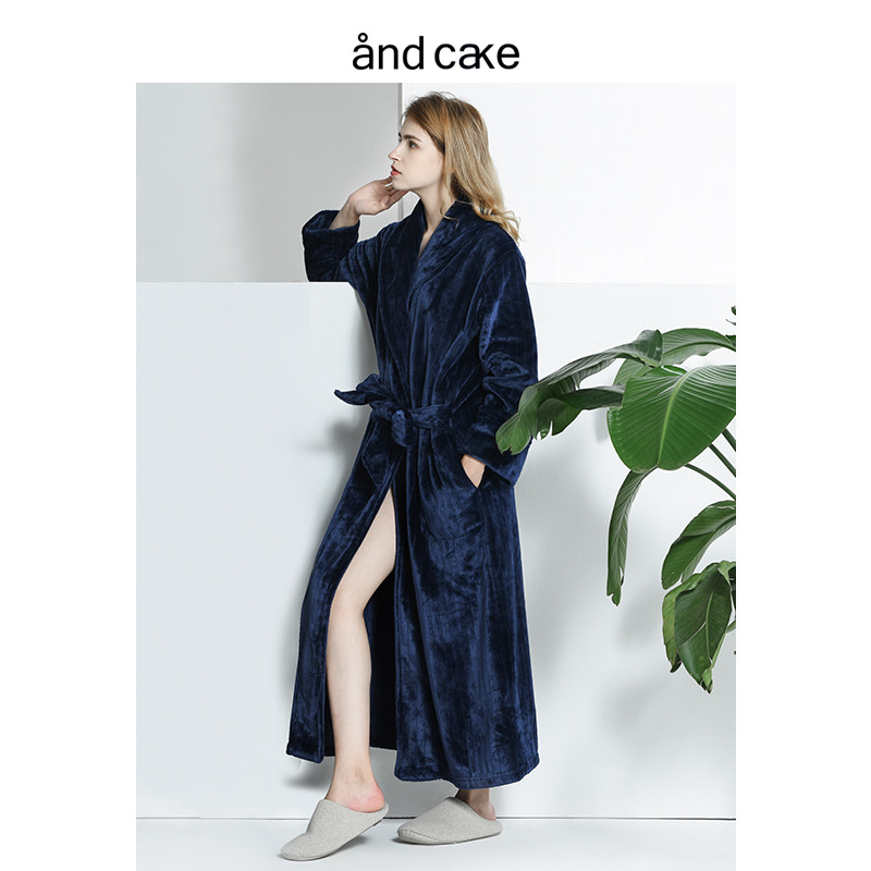 Nordic nightgown women's winter coral fleece bathrobe nightgown extra long thick flannel pajamas women's autumn and winter bathrobe