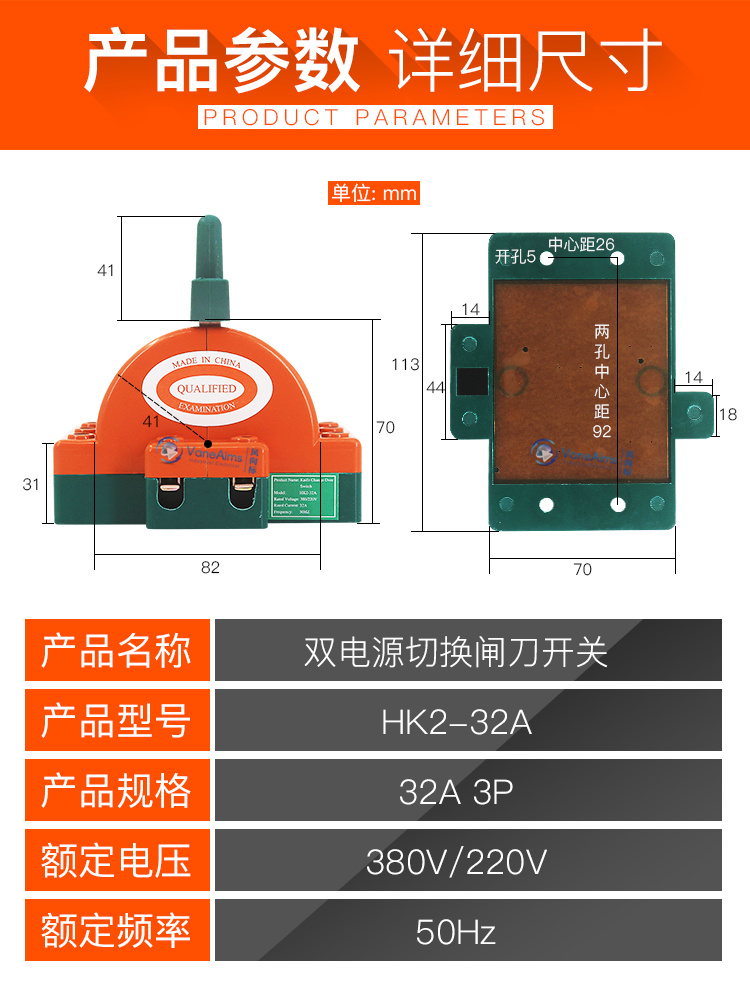 32A double throw knife knife switch double power supply two-way knife switch three-phase three-wire reverse knife switch 380V