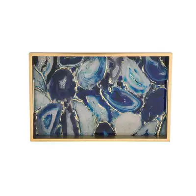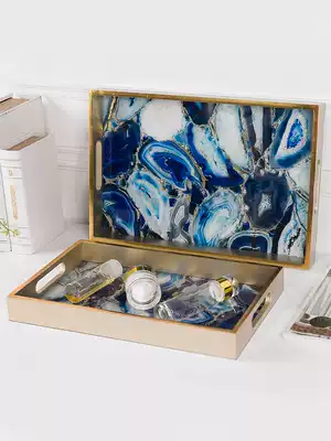 American blue agate stone pattern glass wood pallet decoration model room living room decoration wine tray decoration
