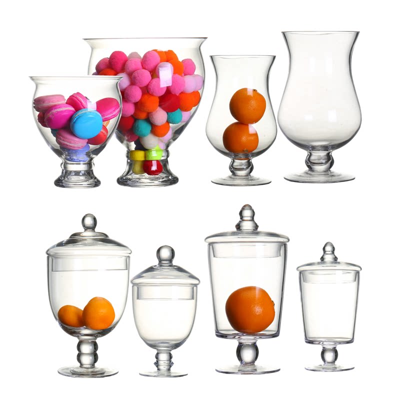 Transparent glass sugar tank small European style creative storage tank set Wedding decoration dessert handmade glass storage tank