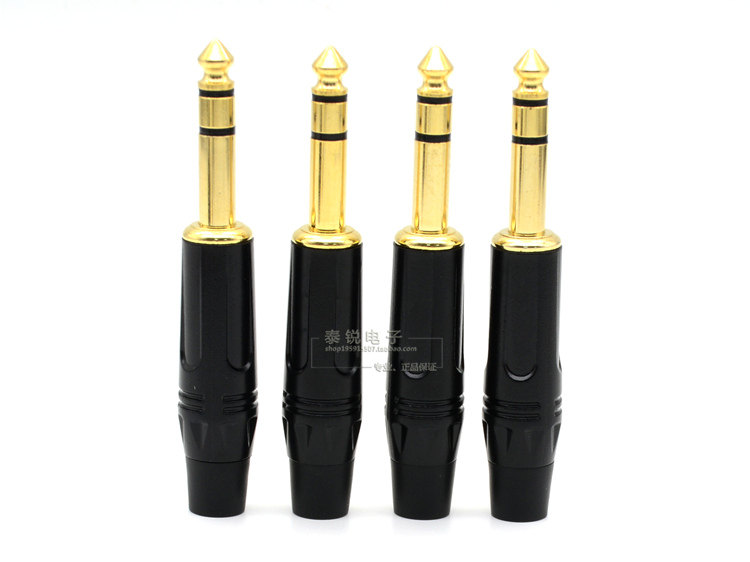 Black Gold Plated Big Three Core 6 35mm Microphone Connector 6 5 TRS Audio Balance Plug Stereo Microphone