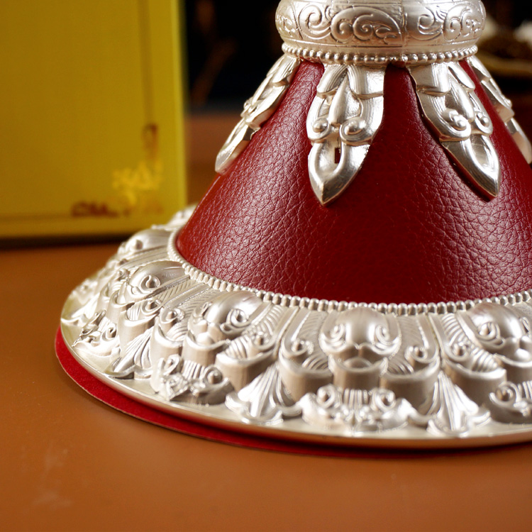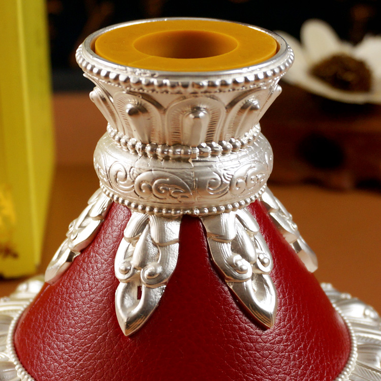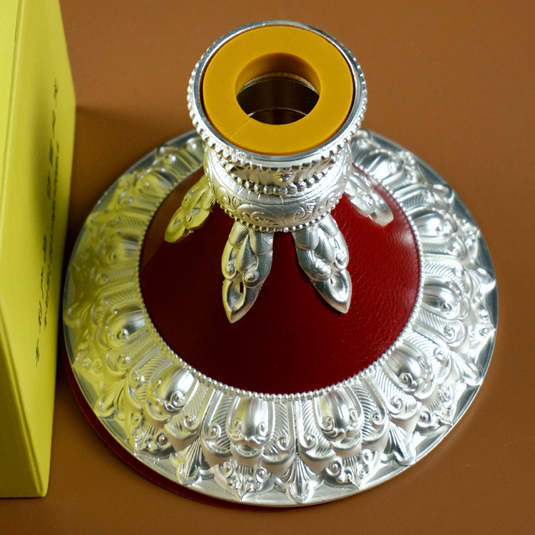 New pure copper red leather prayer wheel base lotus prayer wheel Yaqing prayer wheel special base silver
