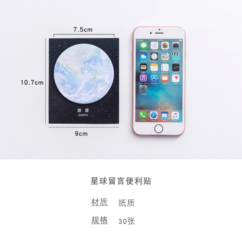 Planet Sticky Notes-Full Set of 6 Books 180 Sheets Earth (30 Sheets Sticky) Black and White Moon (30 Sheets Sticky) Rainbow Moon (30 Sheets Sticky) Mars (30 Sheets Sticky) Mercury