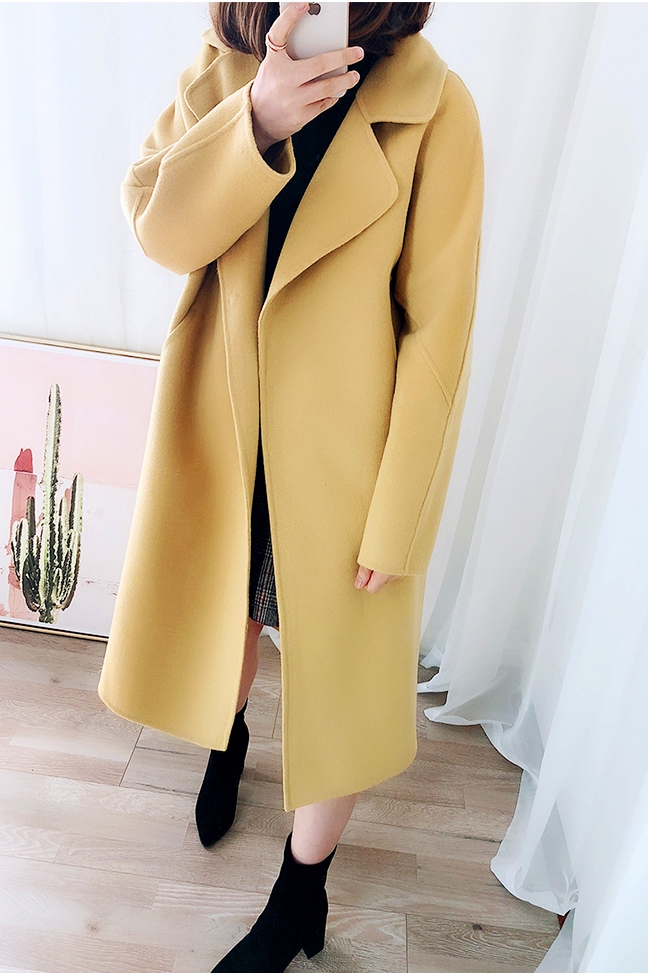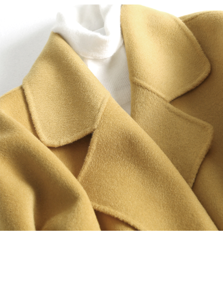Yellow bifacial cashmere big coat woman medium long version 2020 new small high-end cocoon type loose fur coat