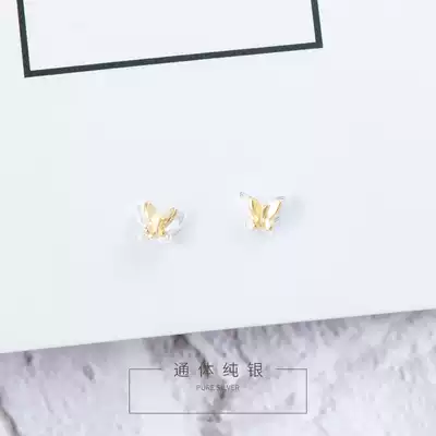 2021 New Tide summer sterling silver butterfly earrings female temperament earrings small casual wind raising ear holes hypoallergenic