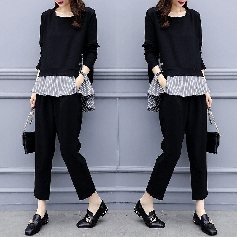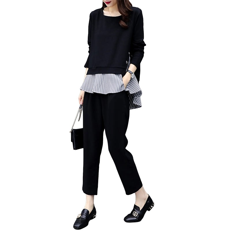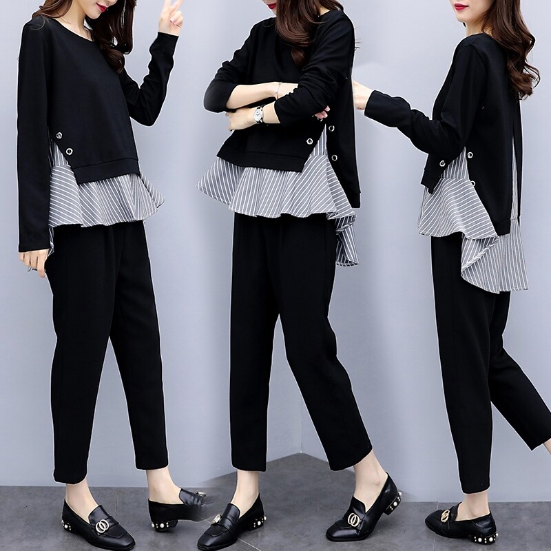 2022 Korean version of early fall big size women's clothing micro-fat mm younger sister the new slimmer and slim foreign pie long pants suit trendy