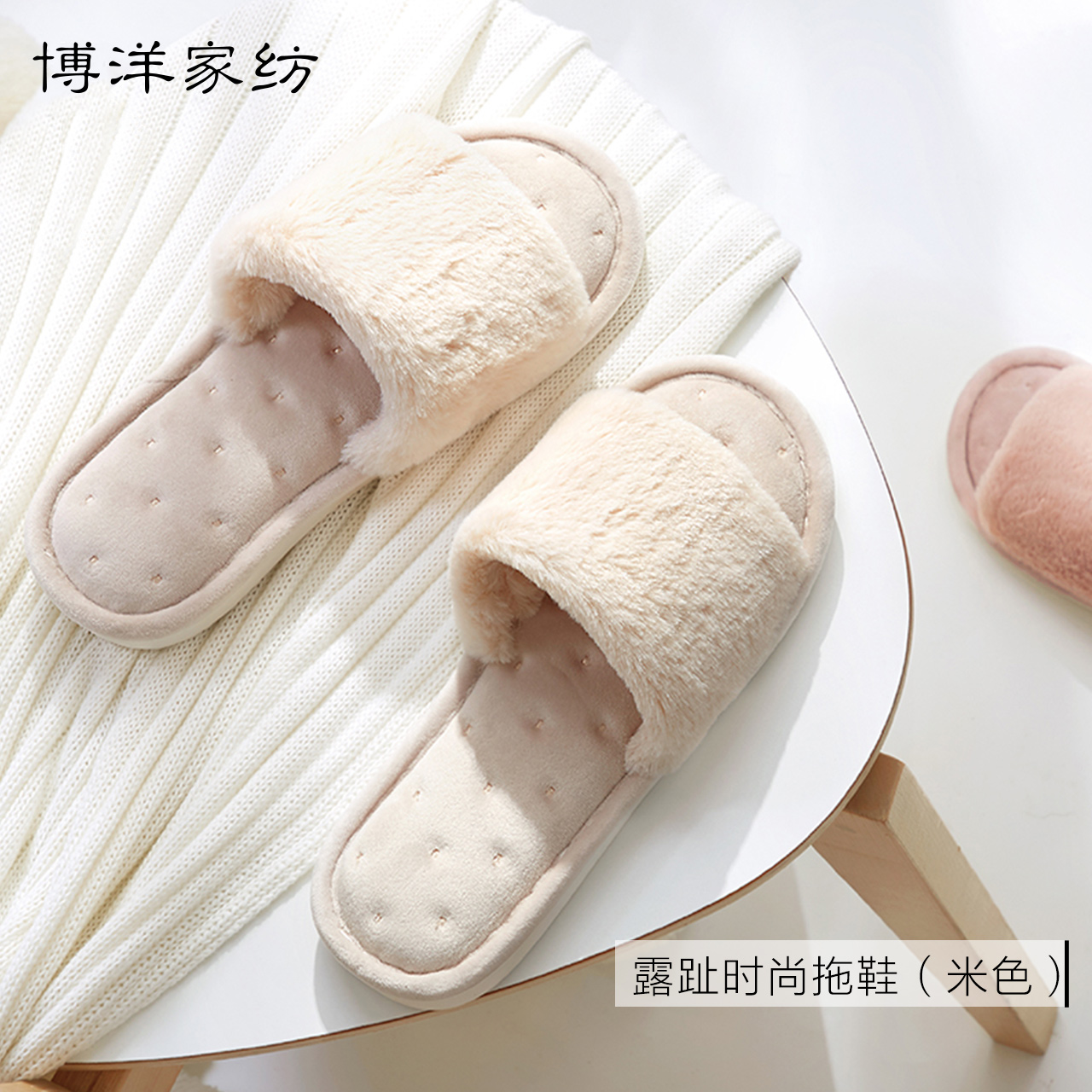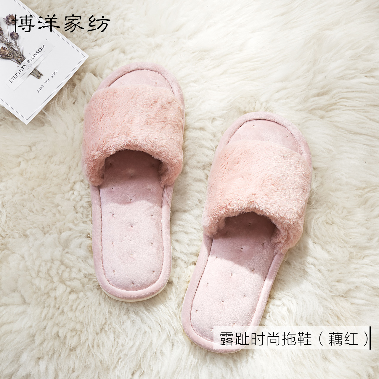 Boyang plush slippers home autumn and winter cotton slippers women cute soft bottom confinement shoes plush winter plush fleece shoes