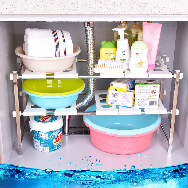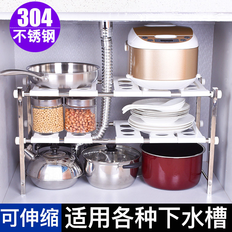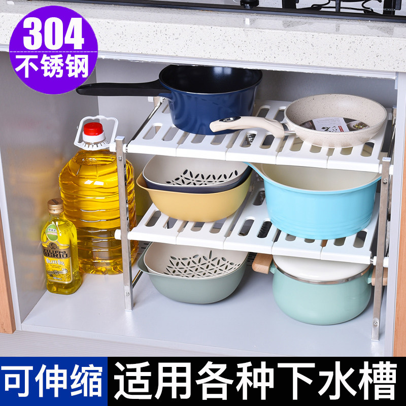 Whole cabinet stainless steel kitchen sink rack retractable two-layer rack multi-layer rack