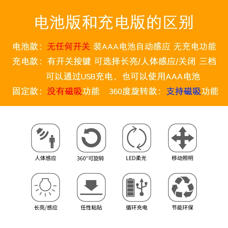 Fixed Battery Model (Warm Light) Fixed Battery Model (White Light) 360° Rotation Battery Model (White Light) Fixed Charge Dual-use Battery Model (Warm Light) Fixed Charge Battery Dual-Use Model (White Light)3