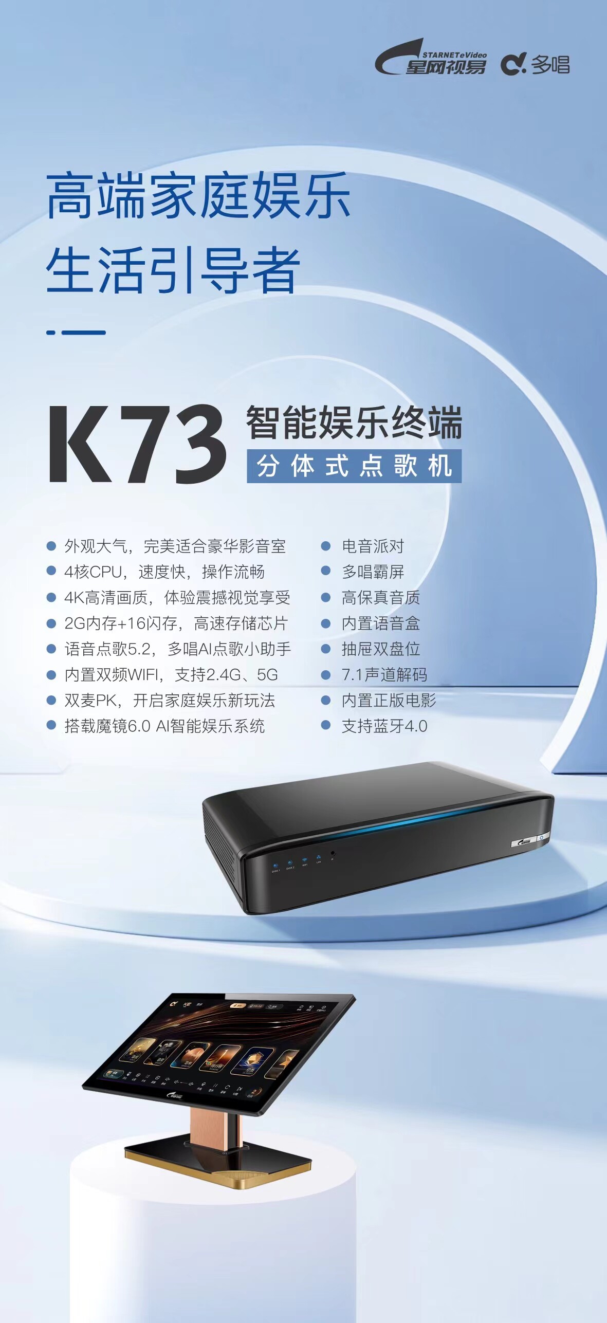 eVideo K73 K68 home karaoke machine karaoke 4K home network ktv system set