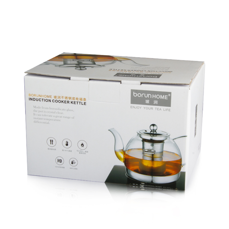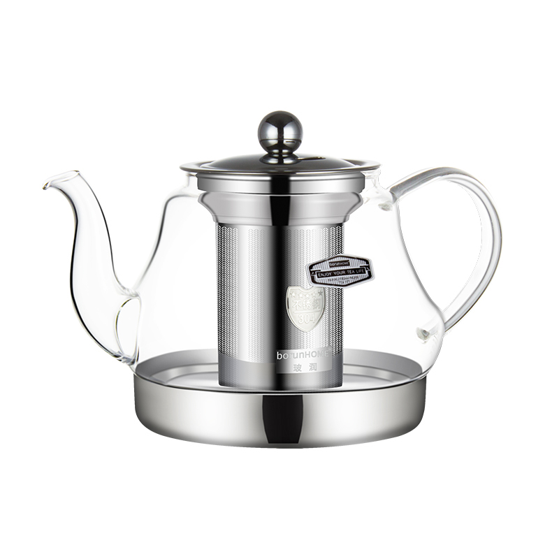 Special teapot for induction cookers BOC-04 with filter liner 304 stainless steel flat bottom burning kettle heat resistant glass pot