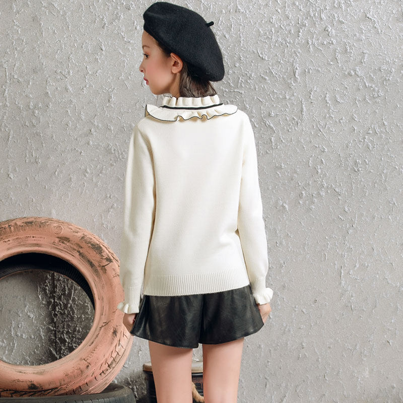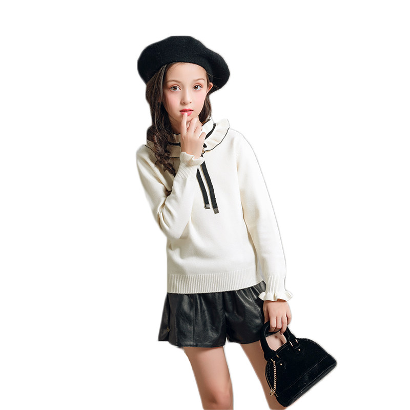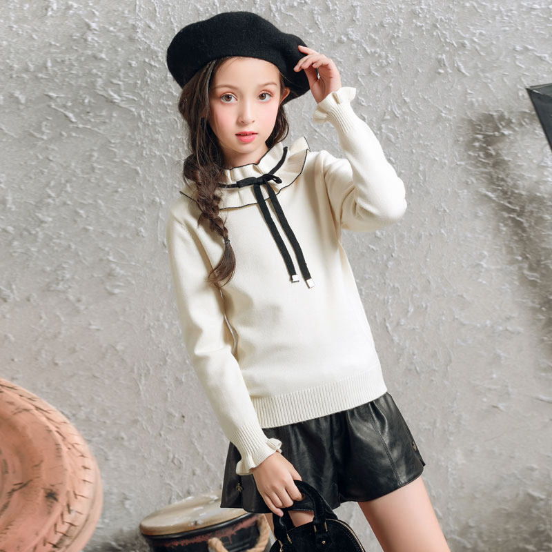 Rabbit velvet girls sweater 2022 autumn and winter new middle and big children's lotus leaf tie blouse bottoming children's sweater trend