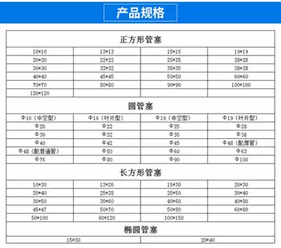 Rectangular 10*20mm Inner plug Rectangular 13*26mm Inner plug Rectangular 15*30mm Inner plug Rectangular 20*30mm Inner plug Rectangular 20*40mm Inner plug Rectangular 25*