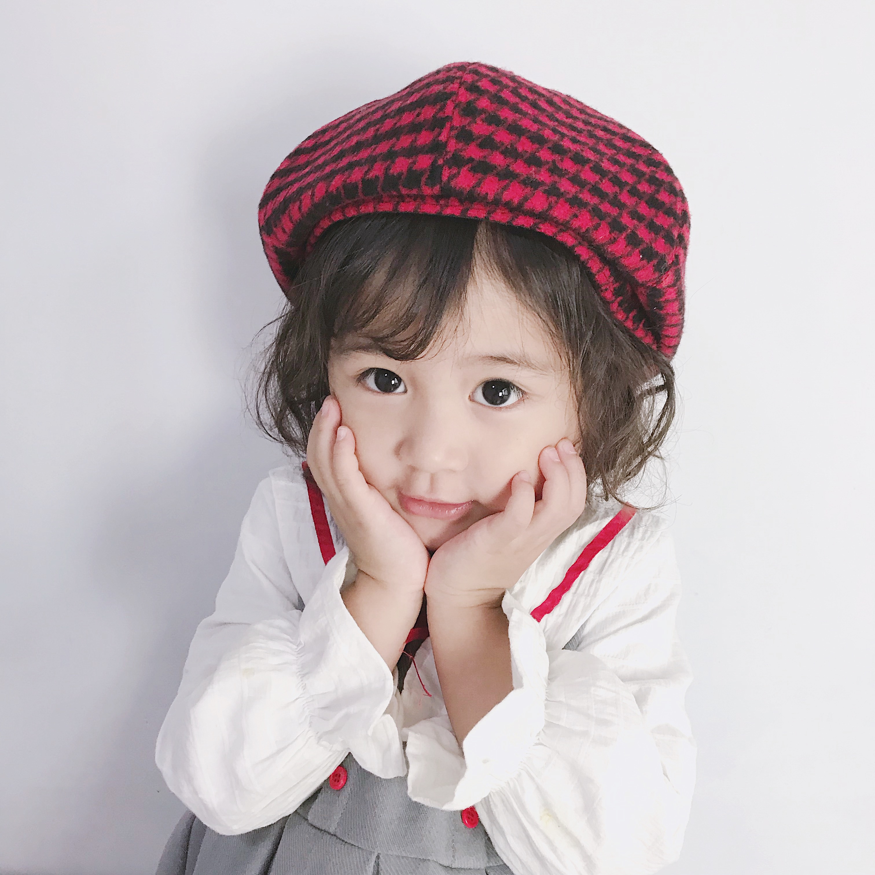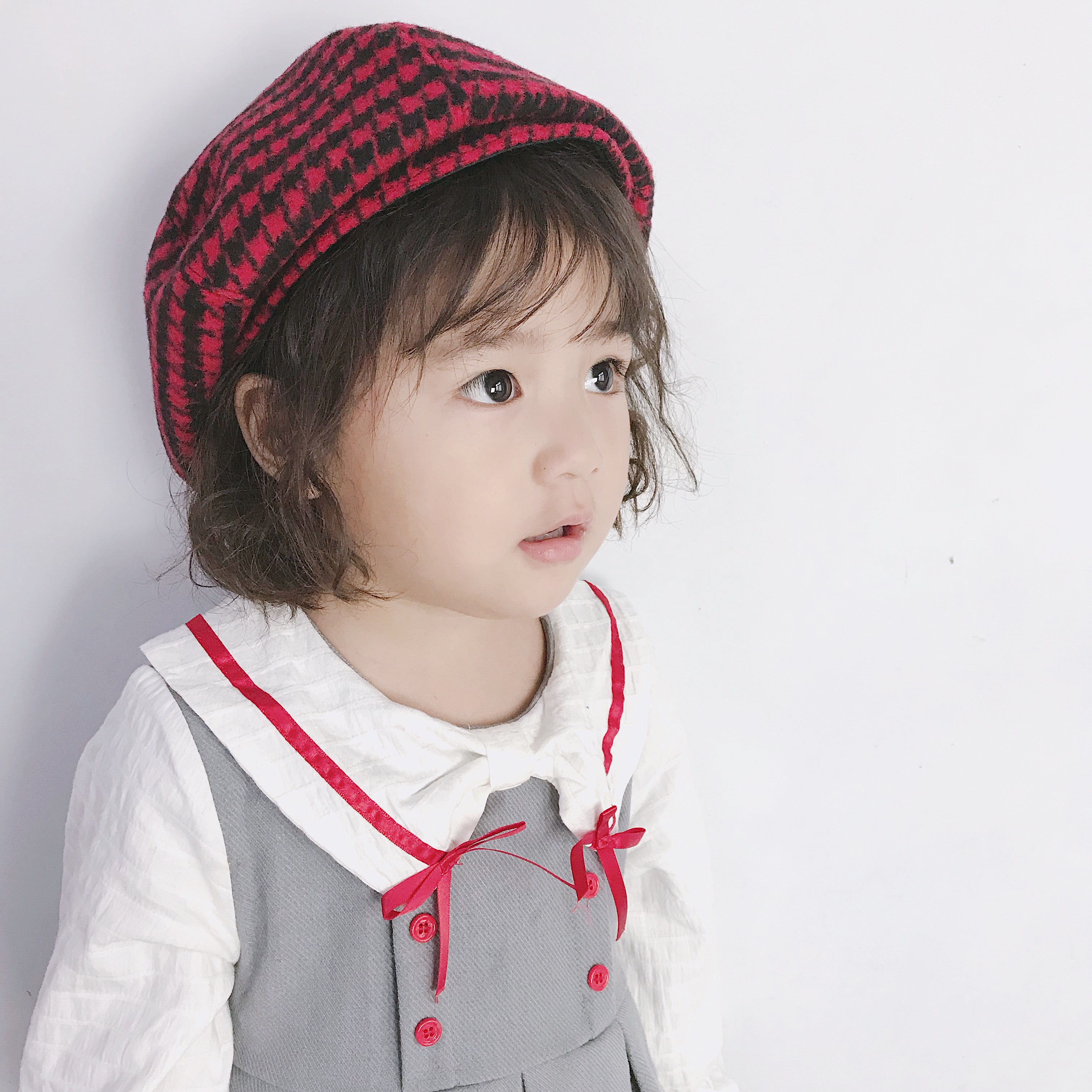 Baby beret hat cute striped children's beret autumn Korean new octagonal hat girls fashion painter hat