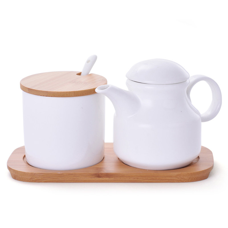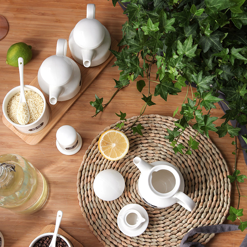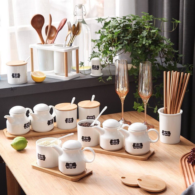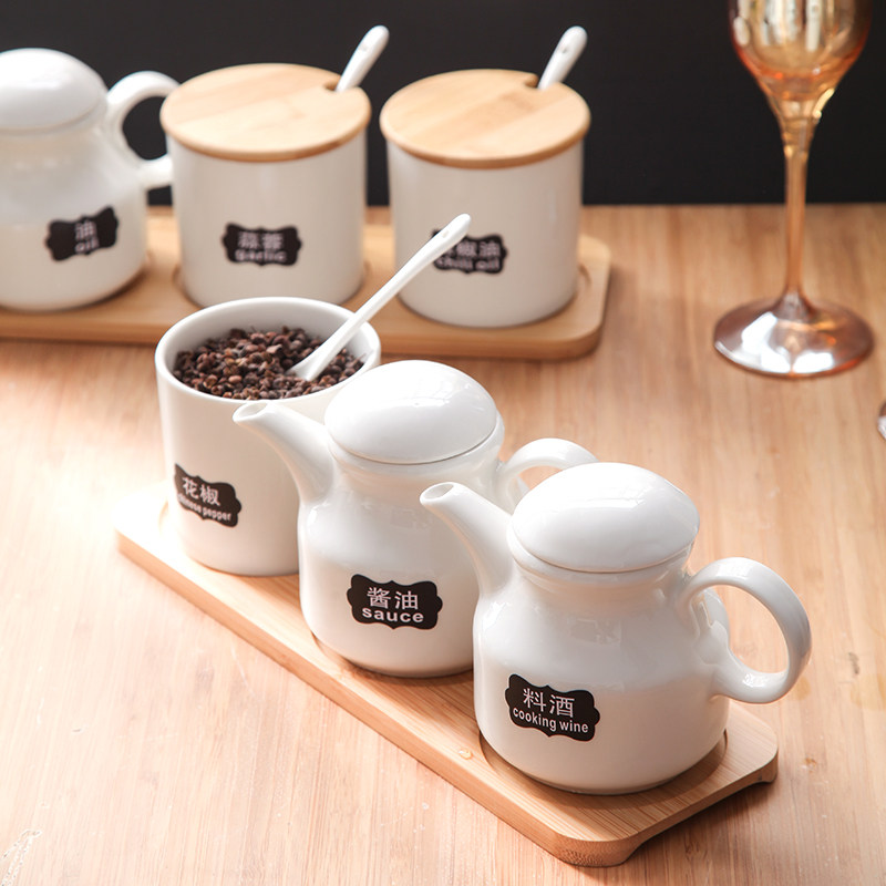 Household chili jar ceramic vinegar bottle combination set kitchen oil salt sauce vinegar pot bottle ceramic seasoning bottle jar box