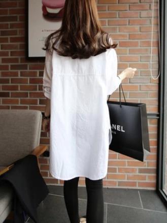 South Korea spring and summer new long-sleeved long-sleeved shirt women's casual wild big size loose bf wind cotton white shirt