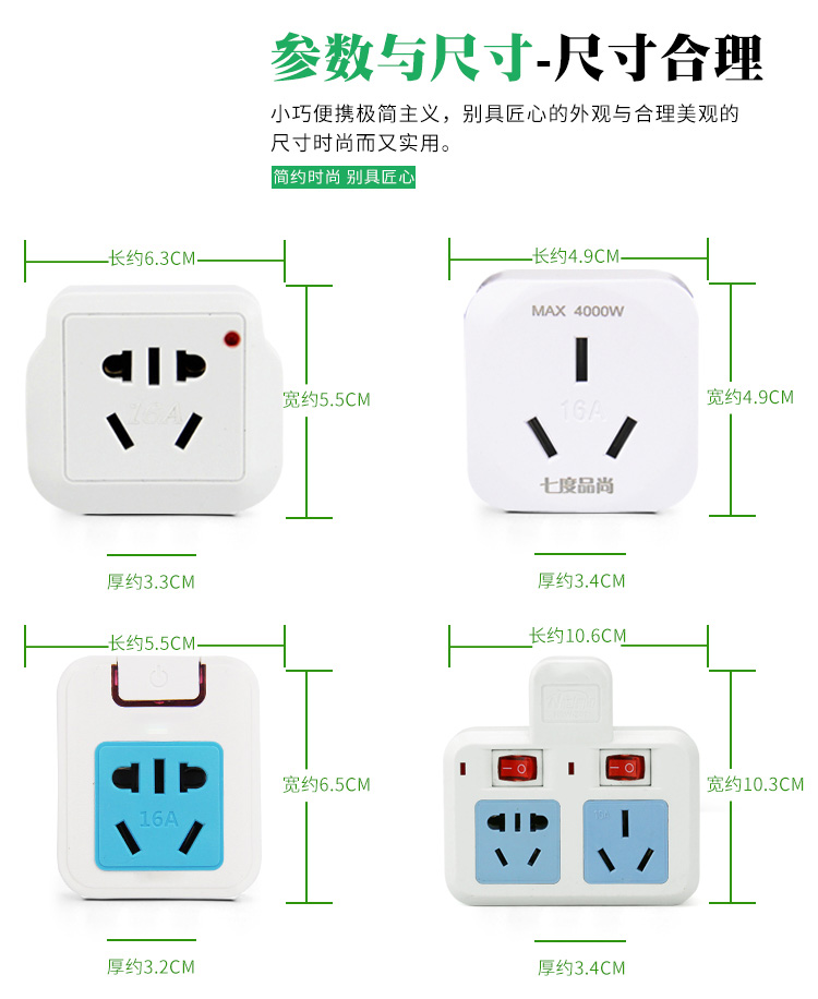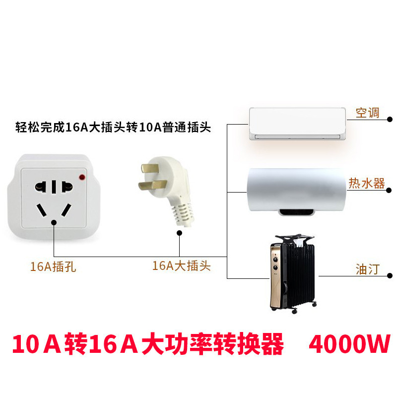 New High Power Conversion Socket 10A Turns 16A Air Conditioning Small Bigger Home Converter Conversion Plug Safety