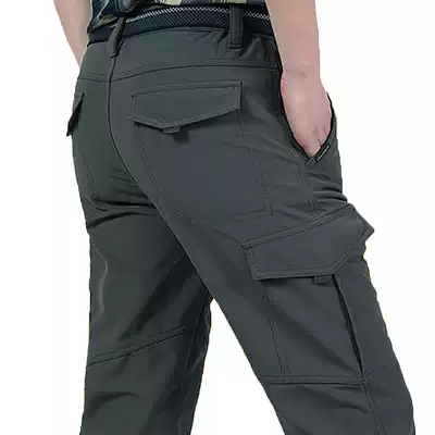 Outdoor assault pants men's autumn and winter large size plus velvet padded windproof waterproof fleece soft shell hiking pants skiing warm