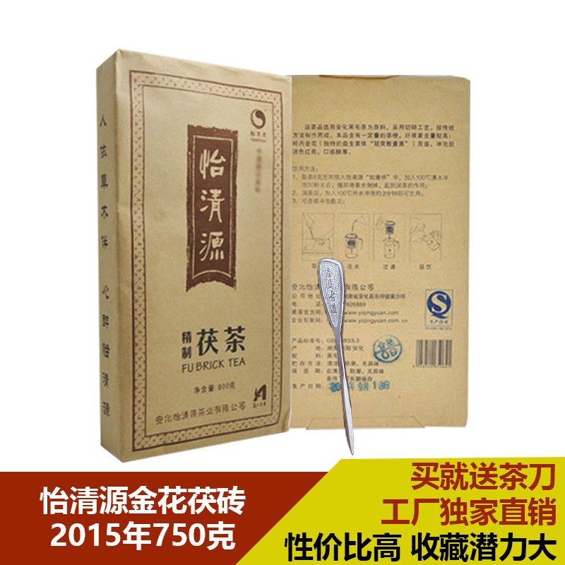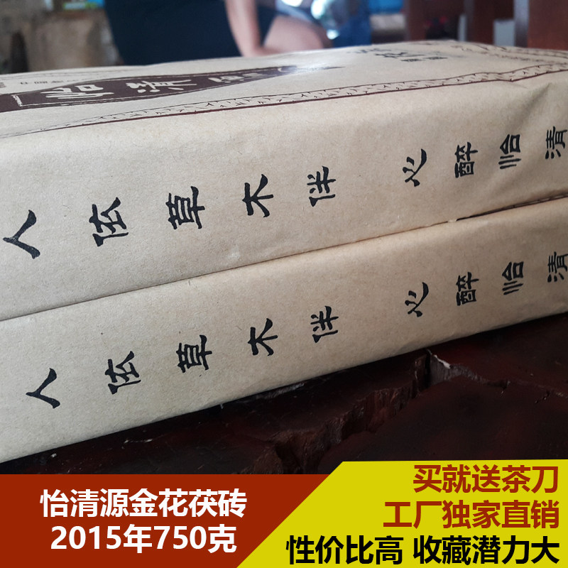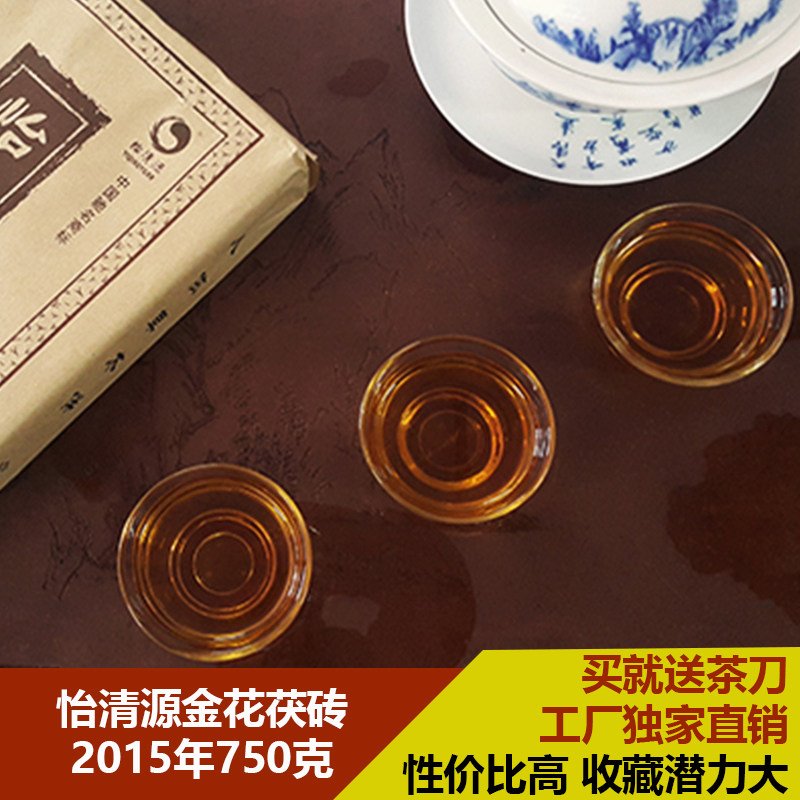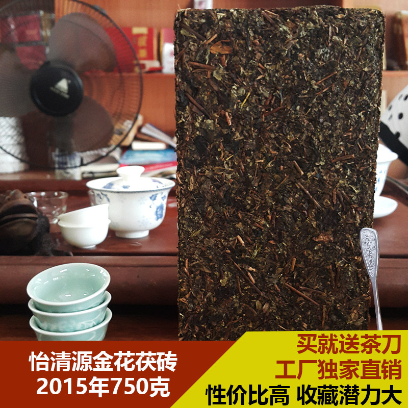Zhengzong Yi Qingyuan Black Tea 2015 750g Gold Flower Blossom Brick Tea Hunan Anhua Black Tea China Tea Leaf tea leaf