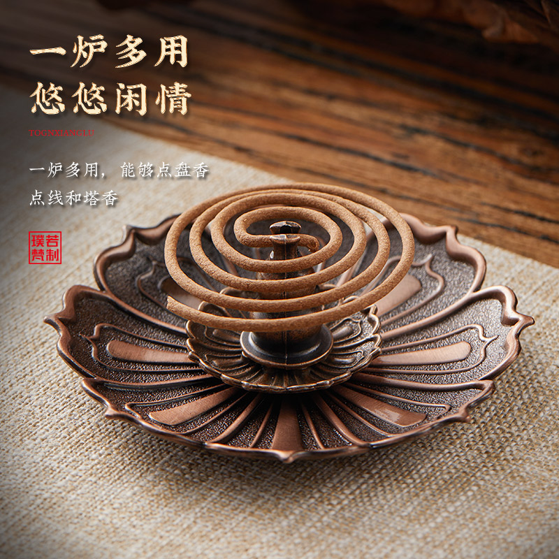 Pu Ruo Fan Lotus incense plate incense seat reclining incense stick copper incense burner Agarwood sandalwood incense home room for Buddha