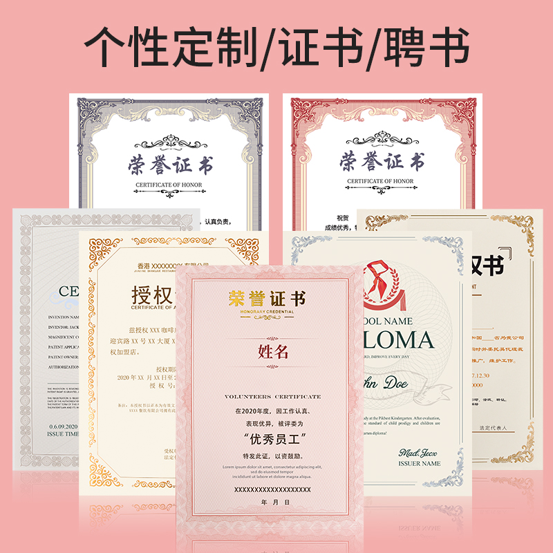 Certificate of honor Inner page paper certificate Letter of appointment Certificate of completion Inner core 6K8K12K16k printable excellent staff School competition certificate Company advanced personal bronzing inner page printing production