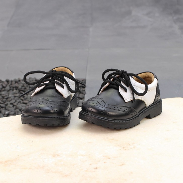 Boys' Leather Shoes Black and White British Boys Soft-soled Casual Bag Shoes Pupil Children's Suit Dress Performance Shoes