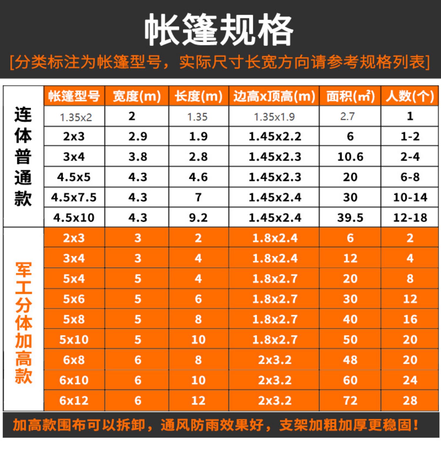 Tent size: