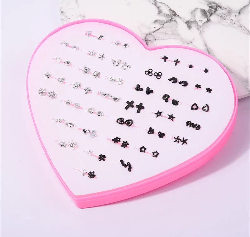 36 pairs of white, red, black and silver colored diamonds 36 pairs of large fruits 36 pairs of colored flowers 36 pairs of mini gold and silver mixed 36 pairs of color dripping oil 36 pairs of gold bottom black and white dripping oil 36 pairs of mini gold 36 pairs